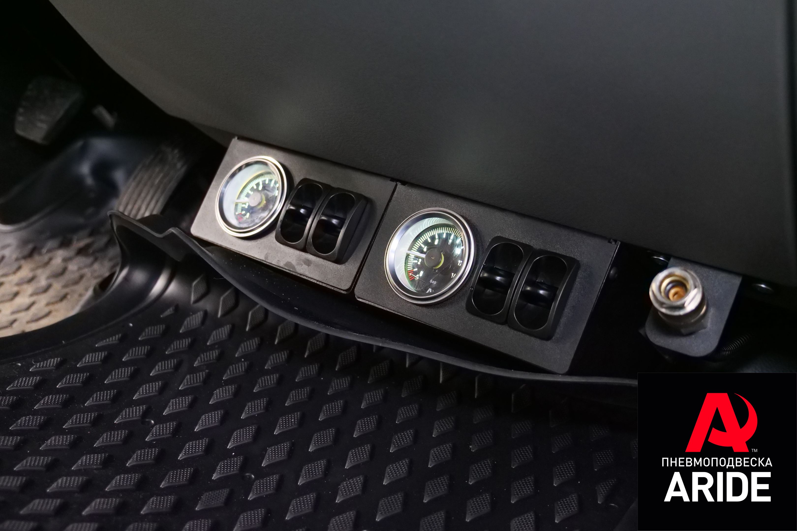 Для управления пневмоподвеской, нами была установлена 4х контурная система управления на 10 литровом ресивере и самым мощным компрессором VIAIR 444C.
