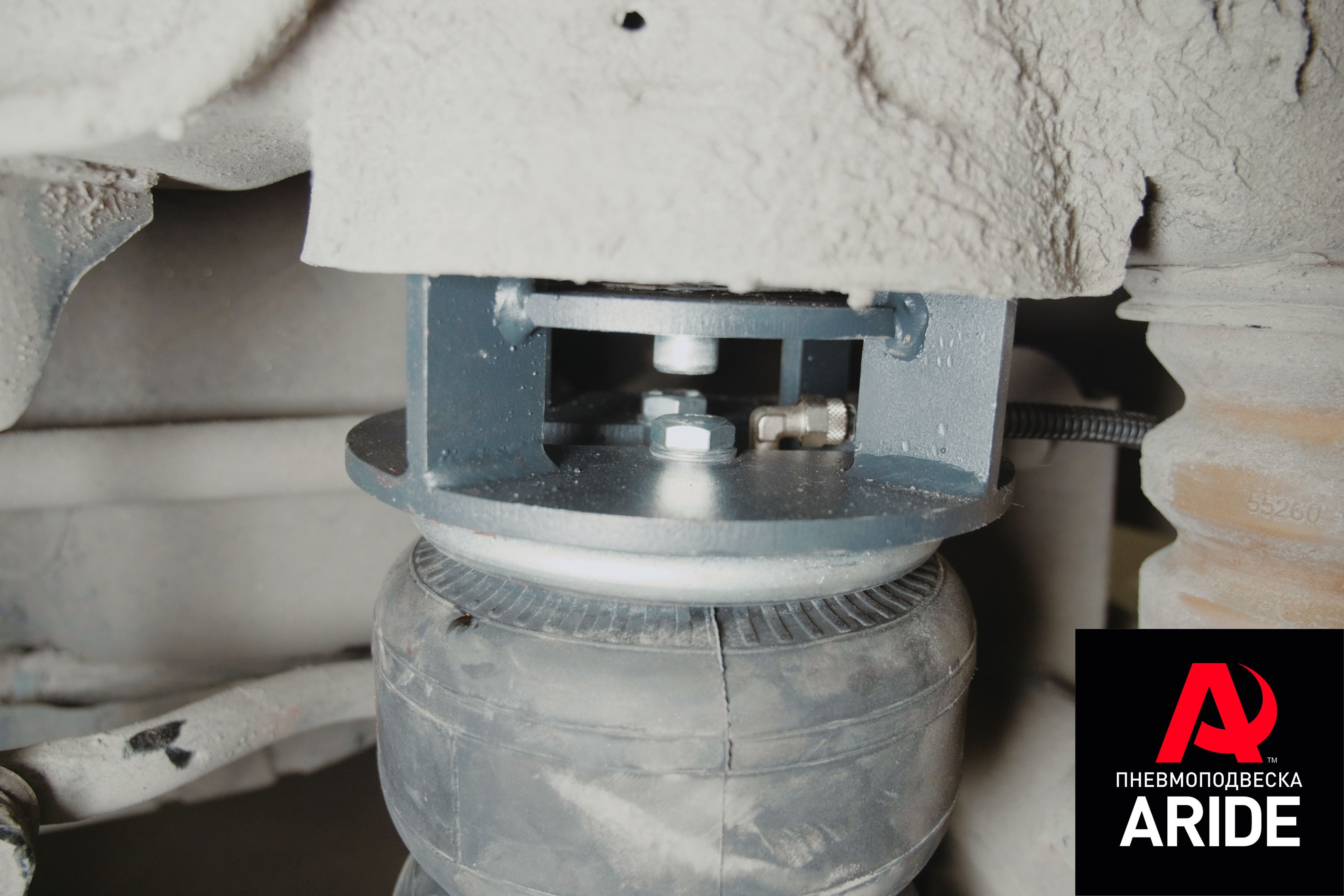 В случае с этим автомобилем, комплект устанавливается взамен заводских пружин. Необходимо демонтировать штатные пружины на задней оси, а на их место установить кронштейны и пневмопэлементы. Верхние кронштейны надёжно крепятся к интегрированной раме, а нижние кронштейны устанавливаются на рычаг и надёжно притягиваются болтами. Параметры установленных пневмоэлементов в точности повторяют параметры заводских пружин.