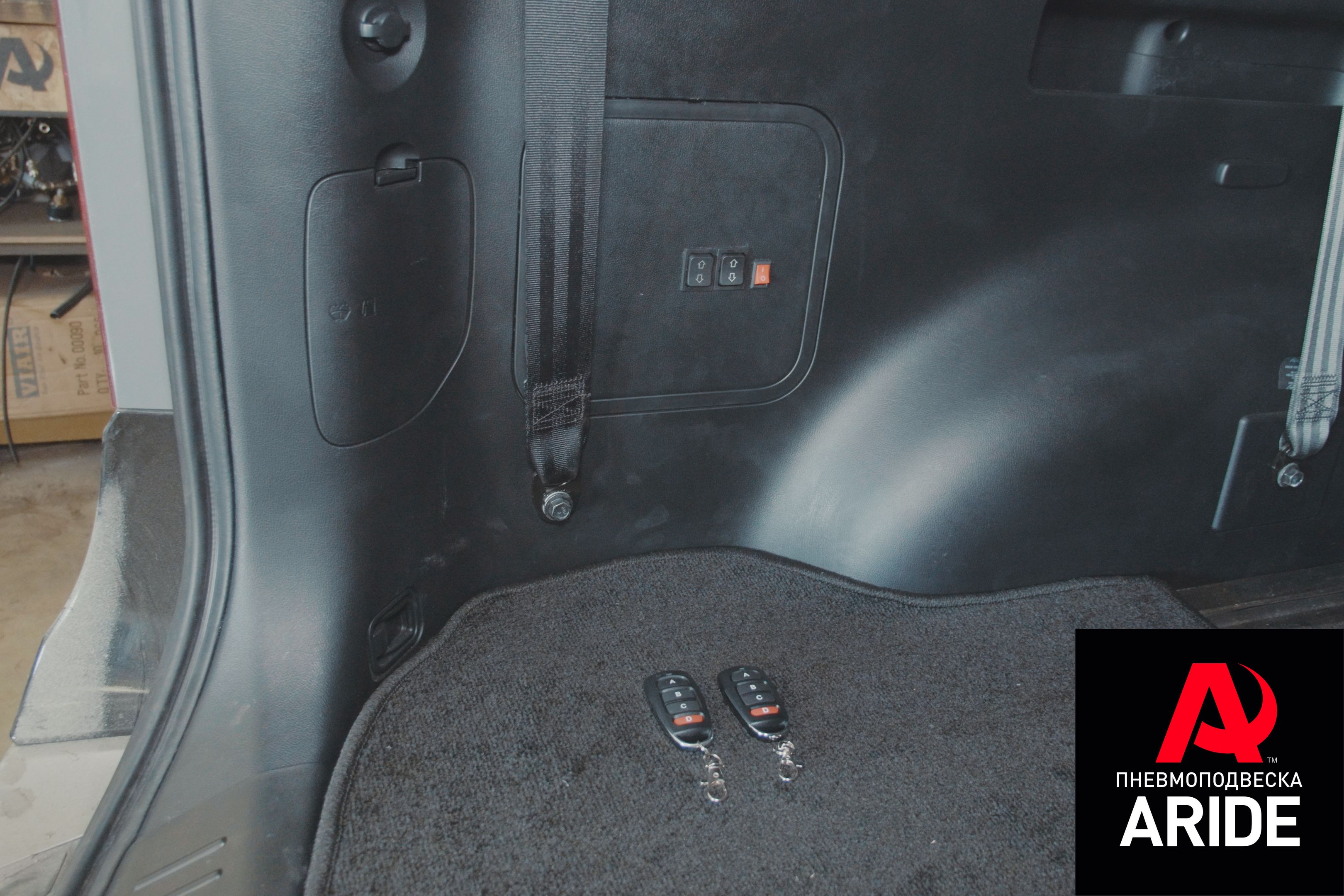 Так же для ещё большего удобства был установлен пульт дистанционного управления пневмоподвеской, он позволяет регулировать давление в каждой подушке, просто находясь рядом с автомобилем.
