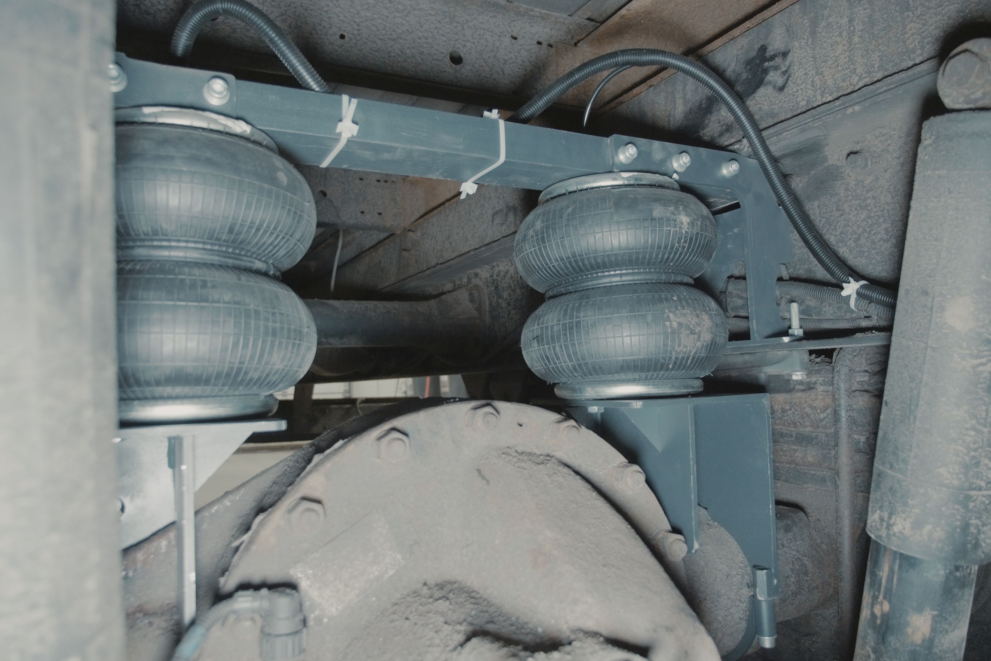 Так как автомобиль имеет штатный воздух на борту, была выбрана безкомпрессорная система управления 2.ОБ.ПС. Она подключается к штатной воздушной магистрале, идущей от заводского ресивера.