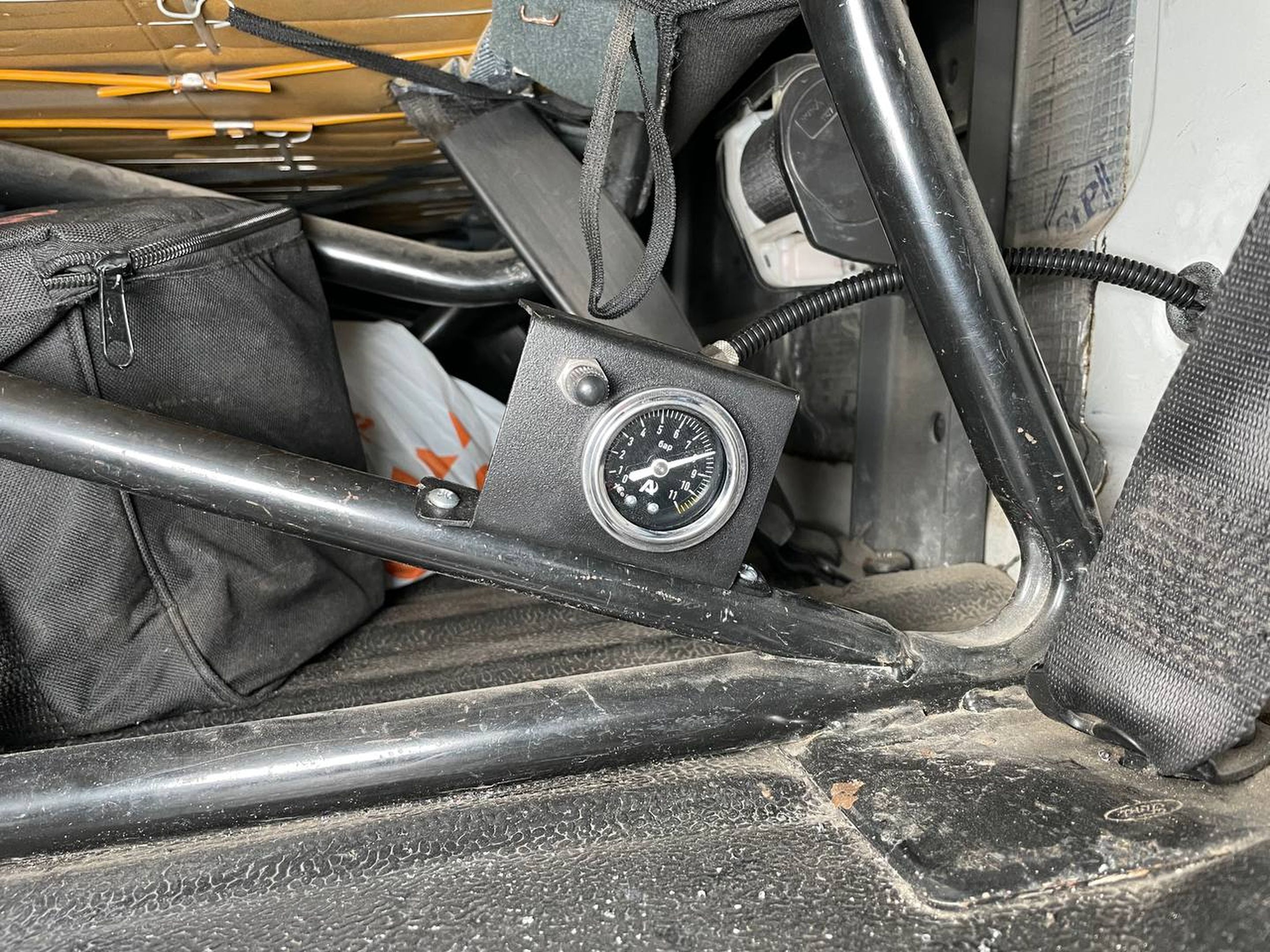 Для отслеживания давления в подушках была установлена одноконтурная система управления 1.PM. Манометр был установлен под пассажирским сидением на втором ряду