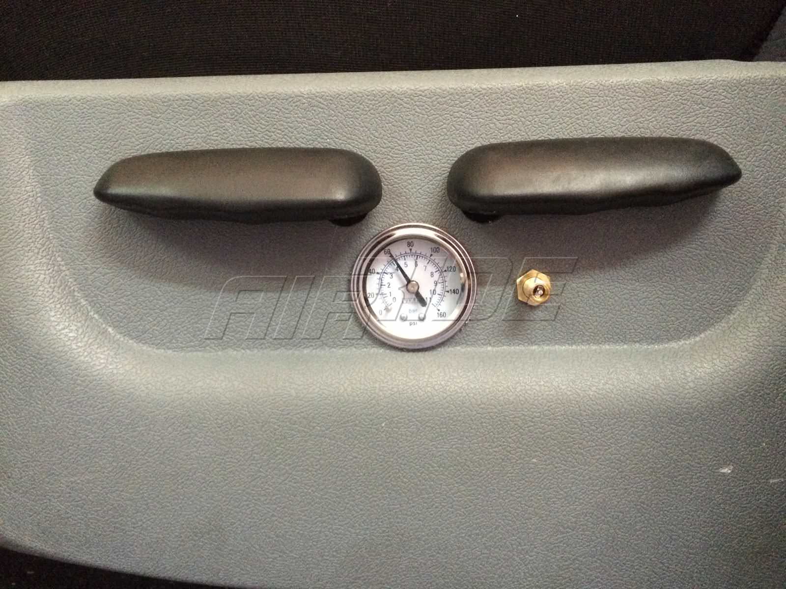 Установка серийного комплекта пневматической подвески (арт№ 224040). Задача - исключение проседания задней оси при загрузке автомобиля снаряжением. Накачка осуществляется через автомобильный ниппель в боковой панели водительского сидения. Там же установлен манометр для контроля давления в пневмокомплекте и тестирования пневмосистемы на предмет утечек воздуха.