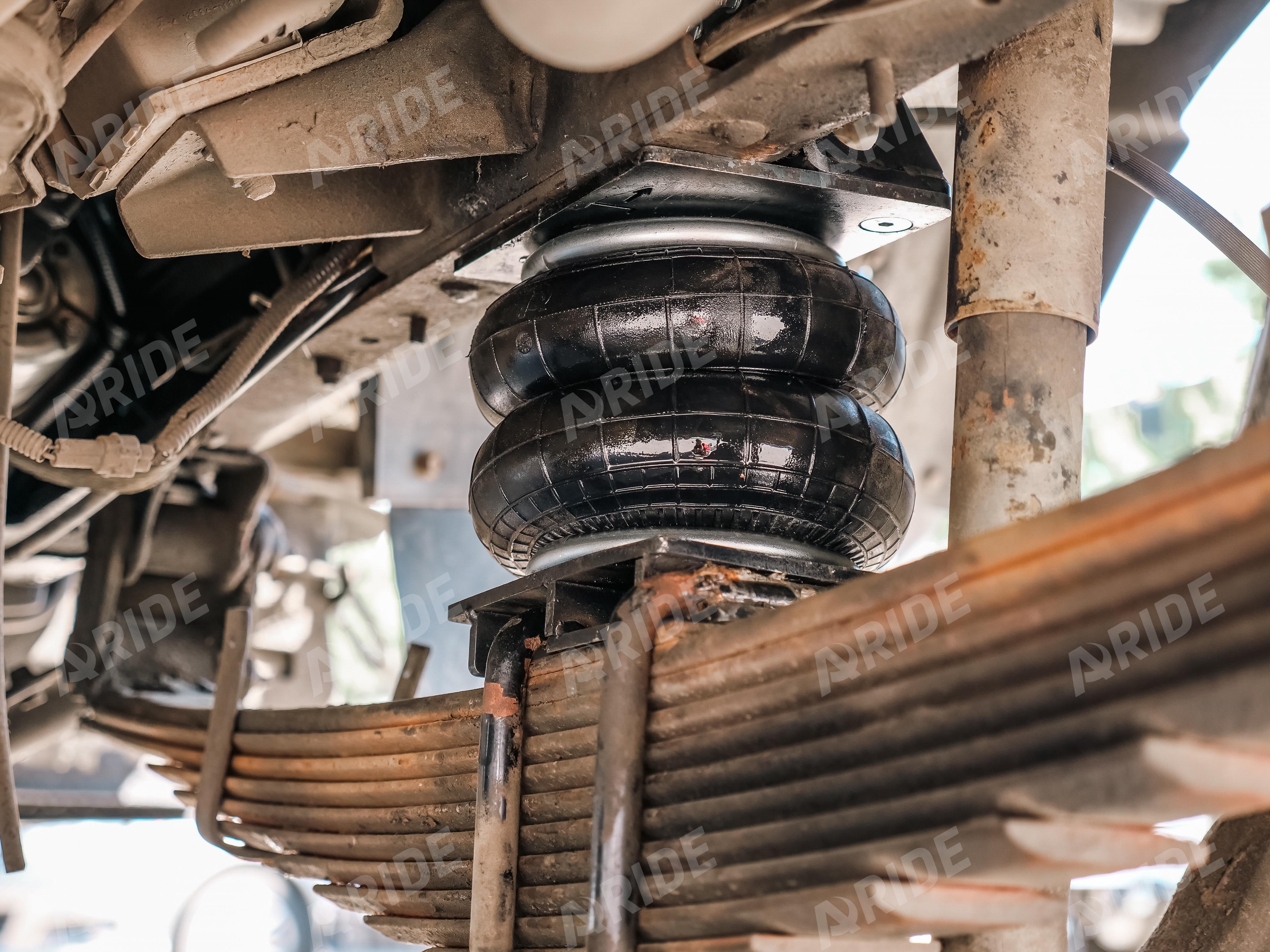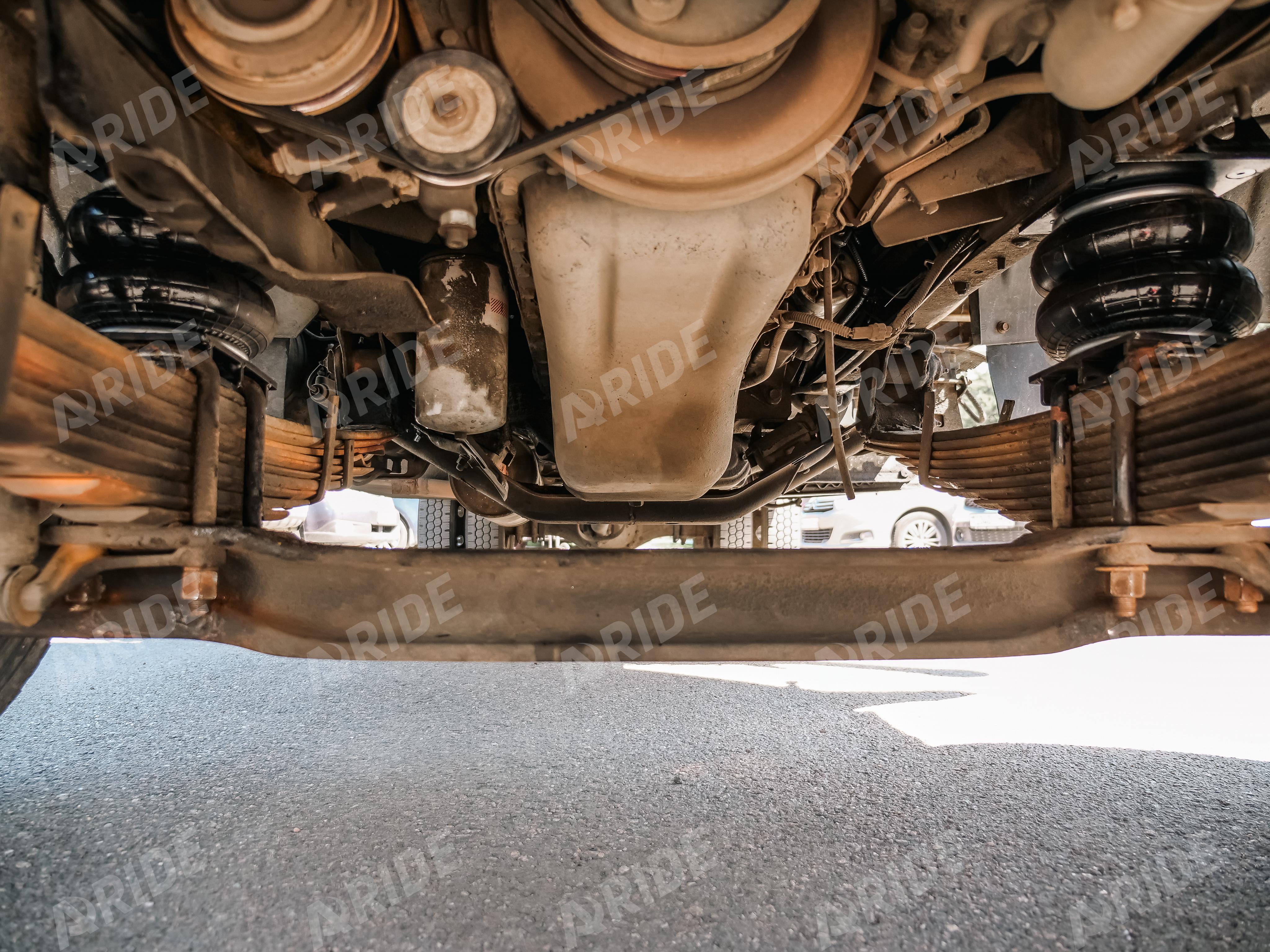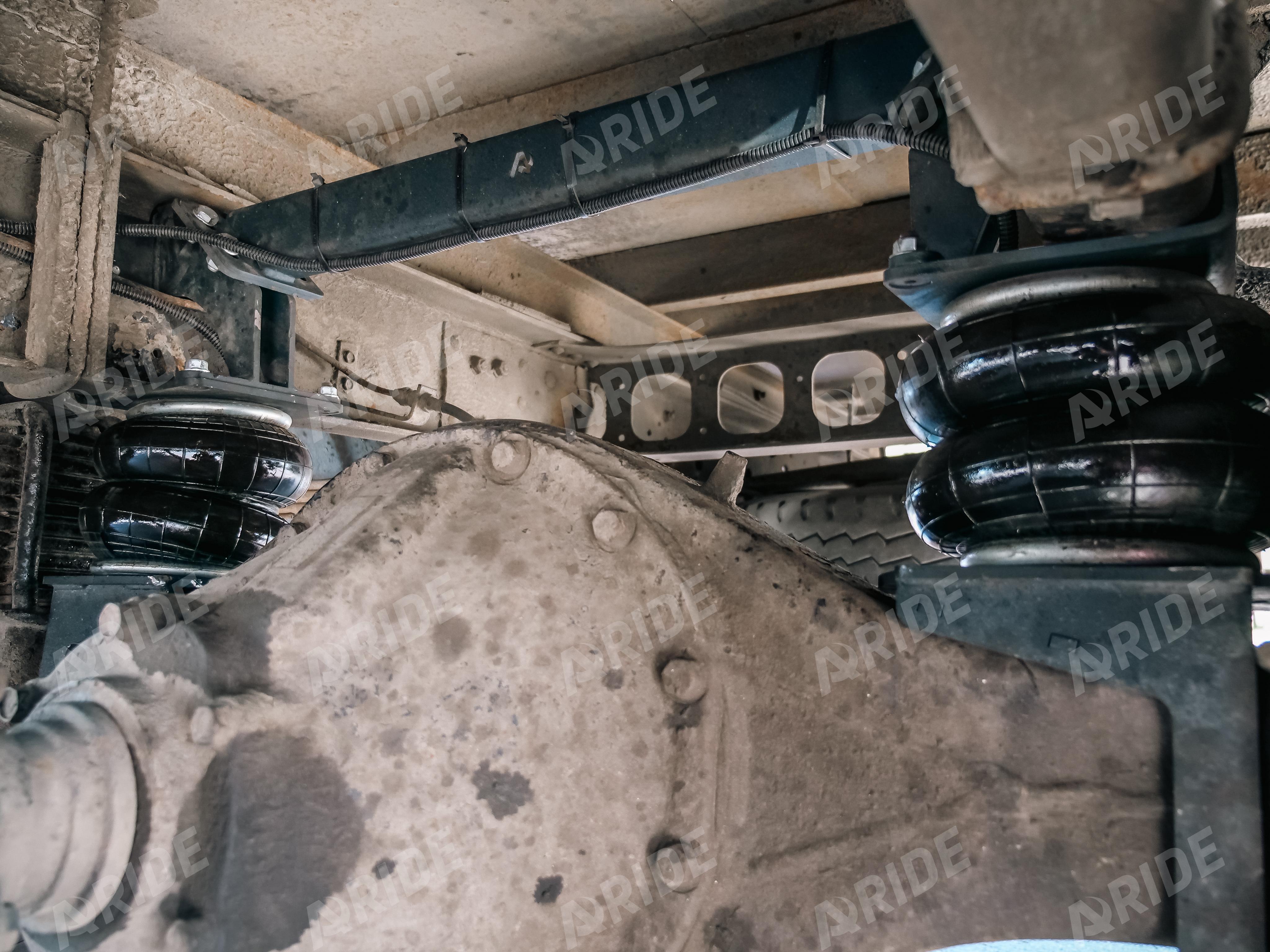 Так как автомобилю более двадцати лет, его заводской рессорный пакет уже сильно изношен. Для восстановления заводских параметров по грузоподъёмности, были установлены два комплекта вспомогательной пневматической подвески.