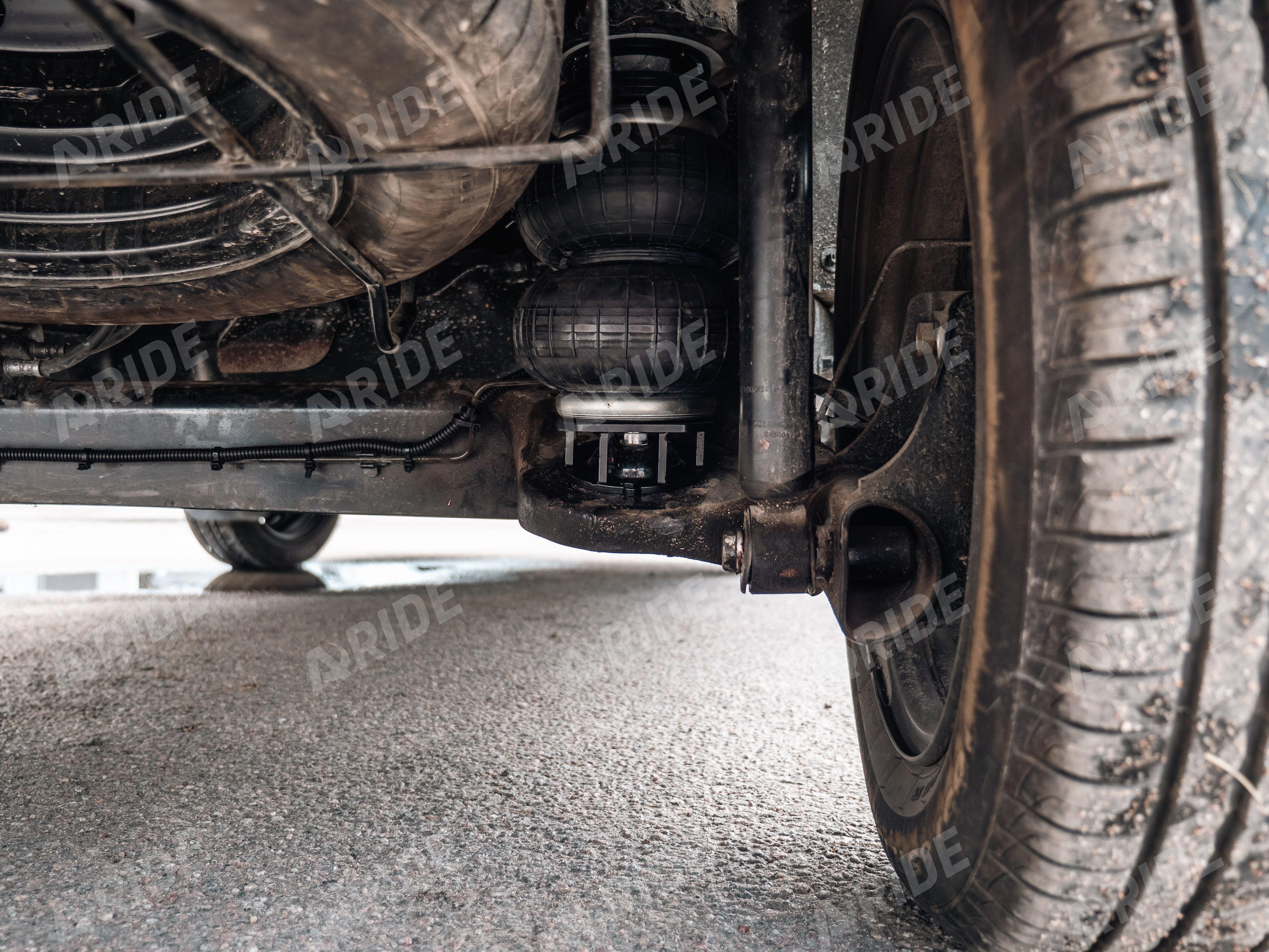 Нашими мастерами была проведена работа по демонтажу заводских пружин и установке на их место пневматических подушек. Пневмоподушки были установлены при помощи кронштейнов, которые устанавливаются на рычаги и крепятся к лонжеронам. Грузоподъёмность каждой подушки - 1200 килограмм. Таких параметров с запасом хватит для коммерческого автомобиля такого класса.