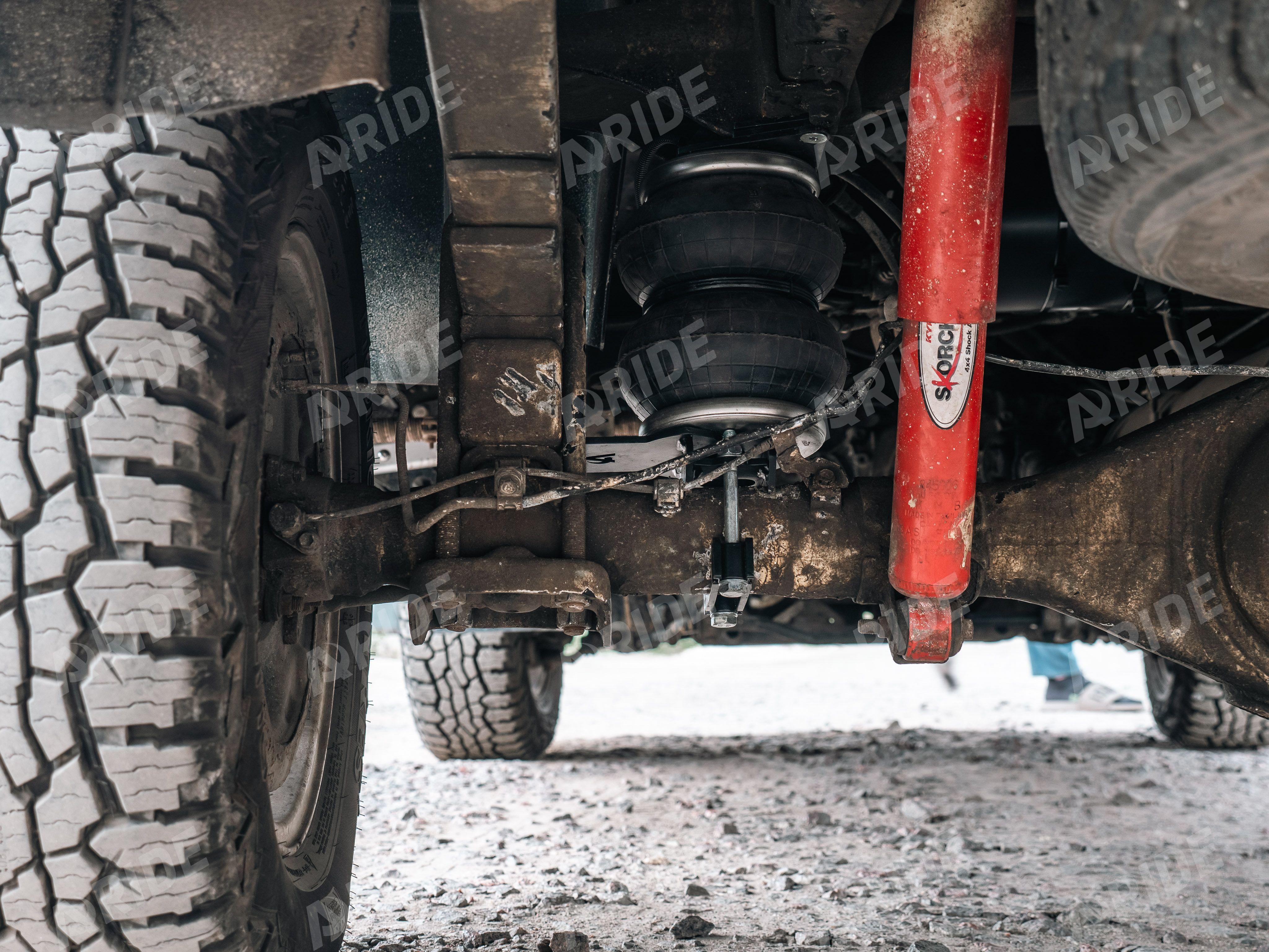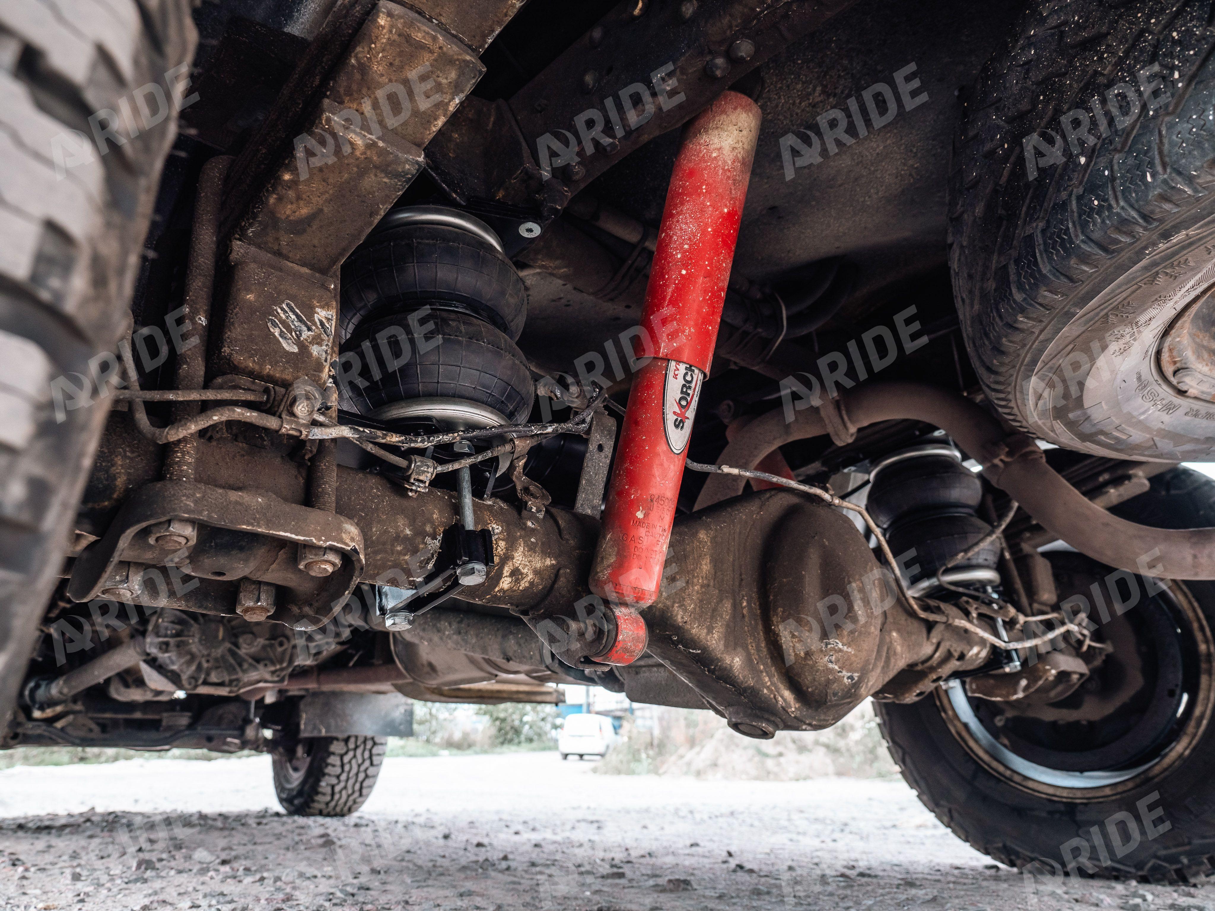 Комплект был стандартно расположен в дополнение к заводскому рессорному пакету. Пневмоподушки установлены между задним мостом и рамой. Такое расположение позволяет максимально верно распределить нагрузку.