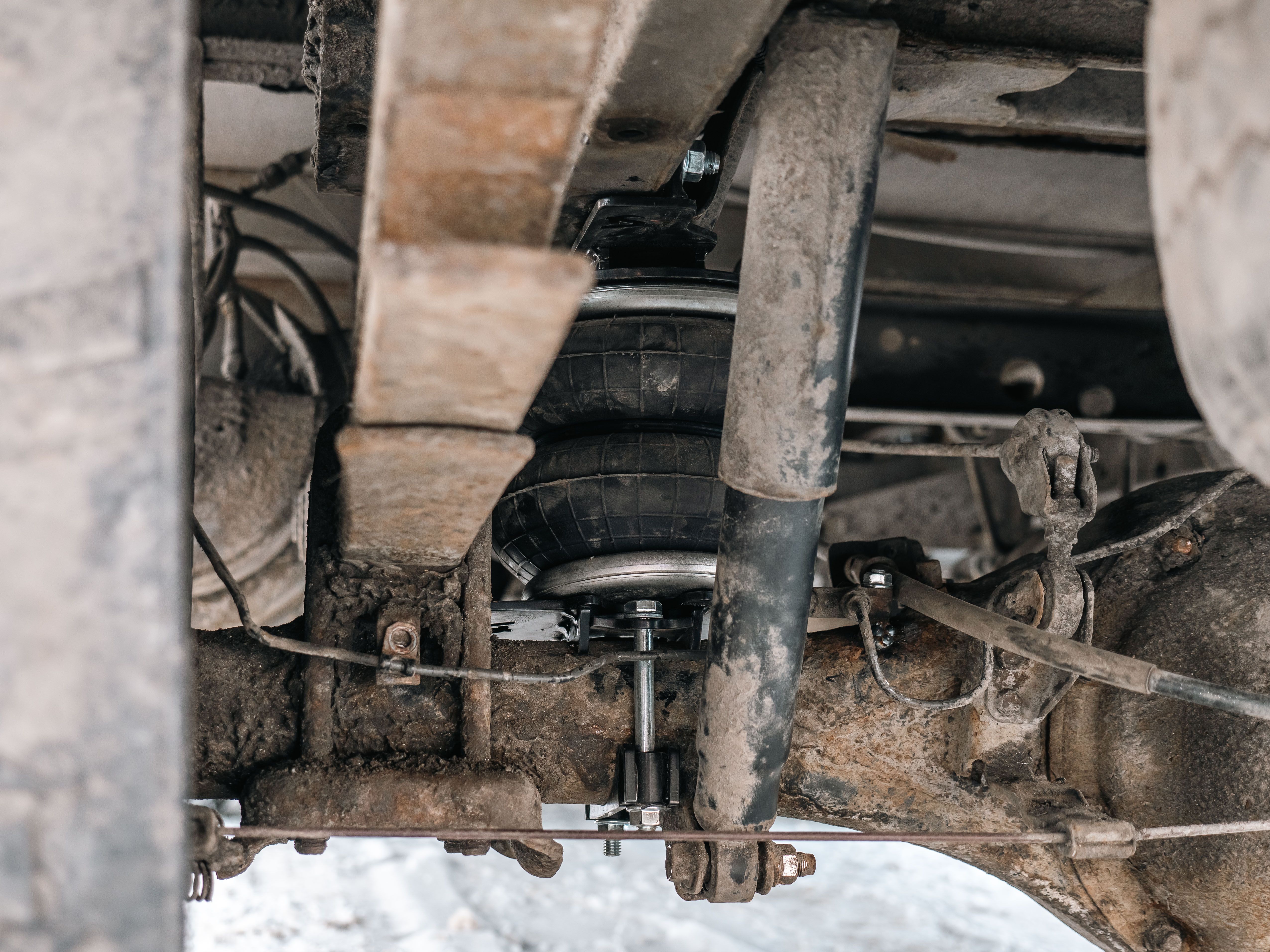 Пневмоподушки были установлены в дополнение к заводским рессорам. Нижние кронштейны "садятся" на мост, а верхние упираются в раму. Пневмоподушки являются дополнительной - третьей точкой опоры. Они работают совместно с заводским рессорным пакетом. Тем самым они снимают часть нагрузки с рессор и защищают их от износа.