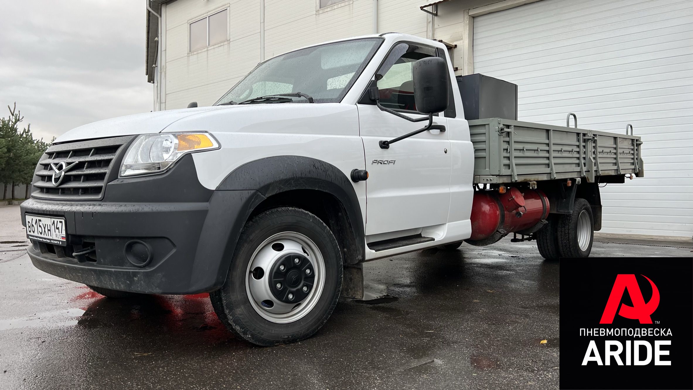 Проект по дооснащению вспомогательной пневмоподвеской автомобиля УАЗ Profi "Полуторка". Это обновлённый лёгкий коммерческий автомобиль от компании УАЗ, имеющий двухскатную ошиновку. Но для полноценного использования данного коммерческого транспорта, совершенно не хватает грузоподъёмности его заводского пакета рессор. Ведь его полная разрешённая масса составляет 3500 килограмм, а зачастую вес самого автомобиля превышает 2-2.5 тонны, соответственно грузоподъёмность приближается к отметке в 1000 килограмм. Именно это и является ключевым фактором для установки вспомогательной пневмоподвески.