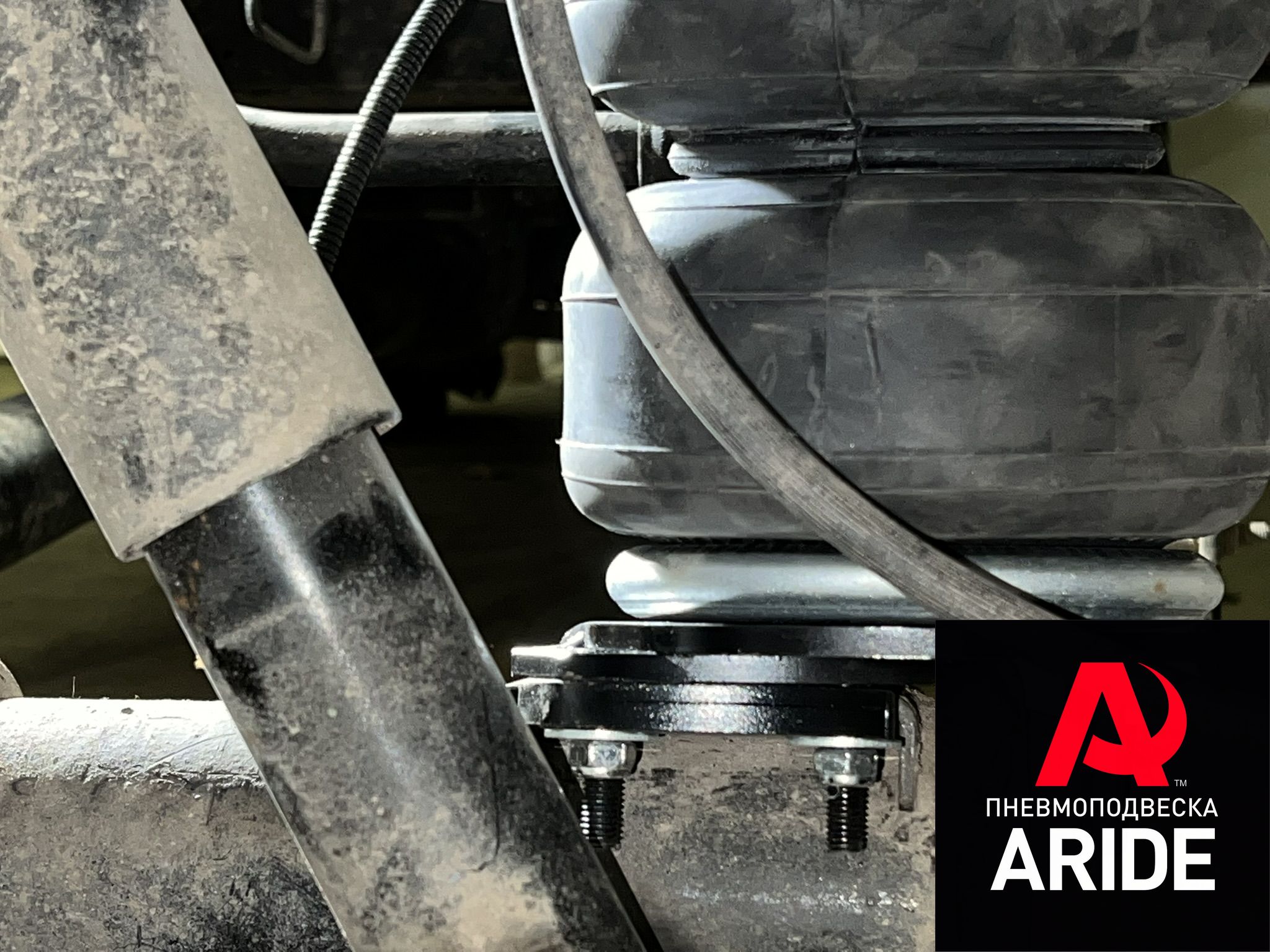 Пневмподушки устанавливаются на автомобиль при помощи специальных кронштейнов. Верхние кронштейны крепятся к раме, так же дополнительно они связаны между собой поперечным усилителем, который сводит к минимуму вращающий момент, возникающий на кронштейнах, при работе пневмоэлементов. Снизу подушка крепится к мосту так же при помощи кронштейнов. Они устанавливаются на пластину приваренную к мосту и притягиваются к ней за счёт двух обхватов. Пневмолиния (трубка) от подушек, прокладывается вдоль всей рамы, до момента подключения её с системой управления, либо же с ниппелями, как в данном проекте. Дополнительно трубка прокладывается в специальной негорючей разрезной гофре, для её максимальной защиты.