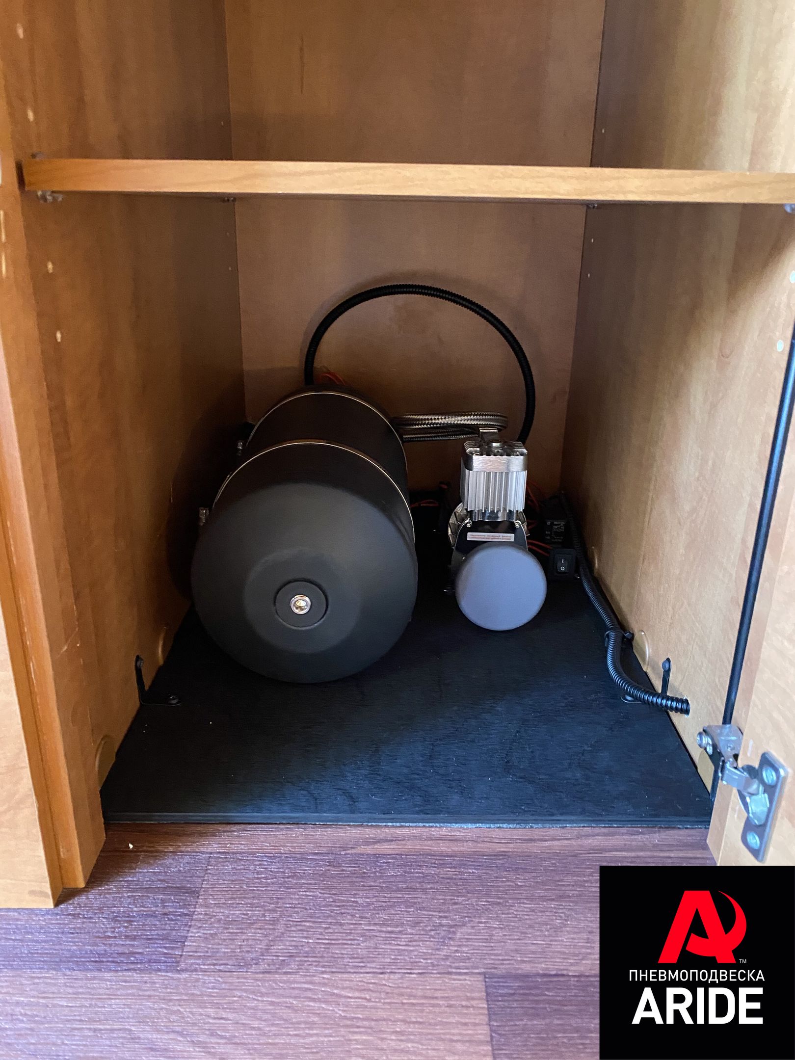 Автодом на базе Фиат Дукато стал довольно частым явлением в нашем СТО, и это понятно, в машине на постоянной основе находится ощутимый вес, в связи с чем штатные рессоры довольно быстро устают. Что бы спасти рессоры от преждевременного износа и при этом добавить мягкости подвеске, установили наш комплект пневмоподвески 23012 на подушках 180D1, а для регулировки давления в этих подушках клиент будет использовать систему управления 2.120.PS. С тем, чтобы красиво разместить органы управления сложностей не возникло, т.к. в кузове данного автодома полно ниш, тумбочек, полочек и тому подобного.