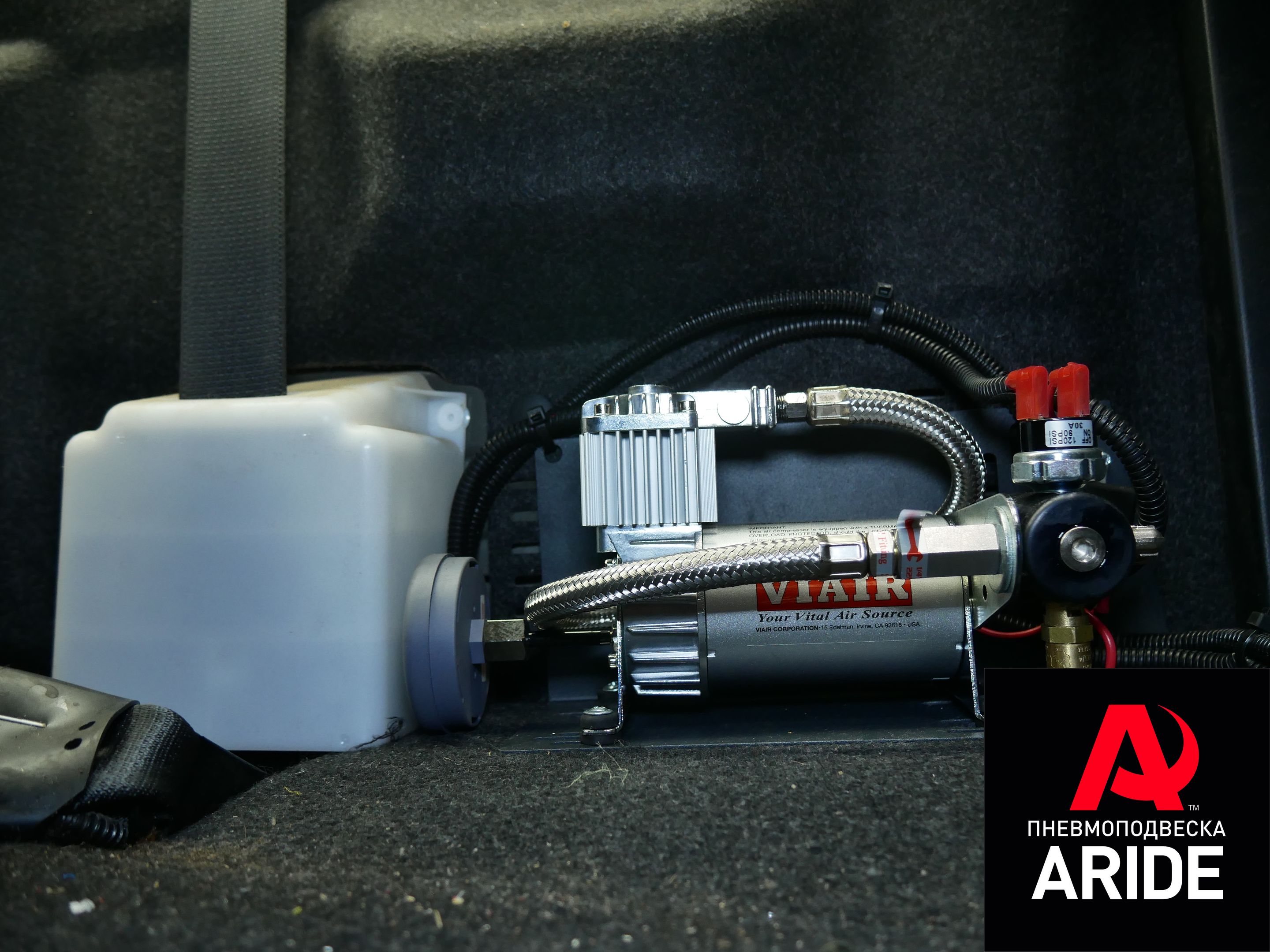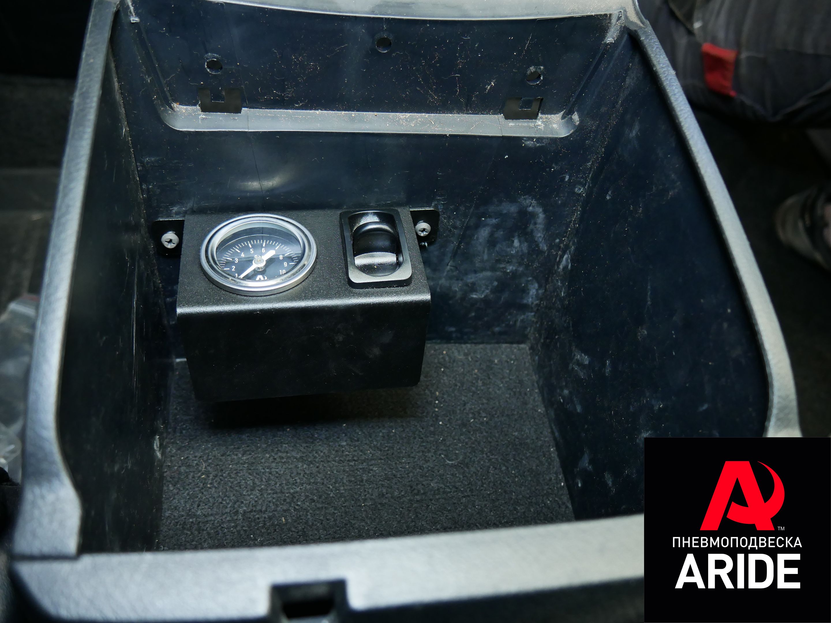 Для возможности полноценной и удобной регулировки давления в подушках, данный авто был оборудован одноконтруной системой управления. Компрессор расположился за заднем рядом сидений, а блок управления (манометр и пневмоплкавиша), для удобства установили в подлакотнике.