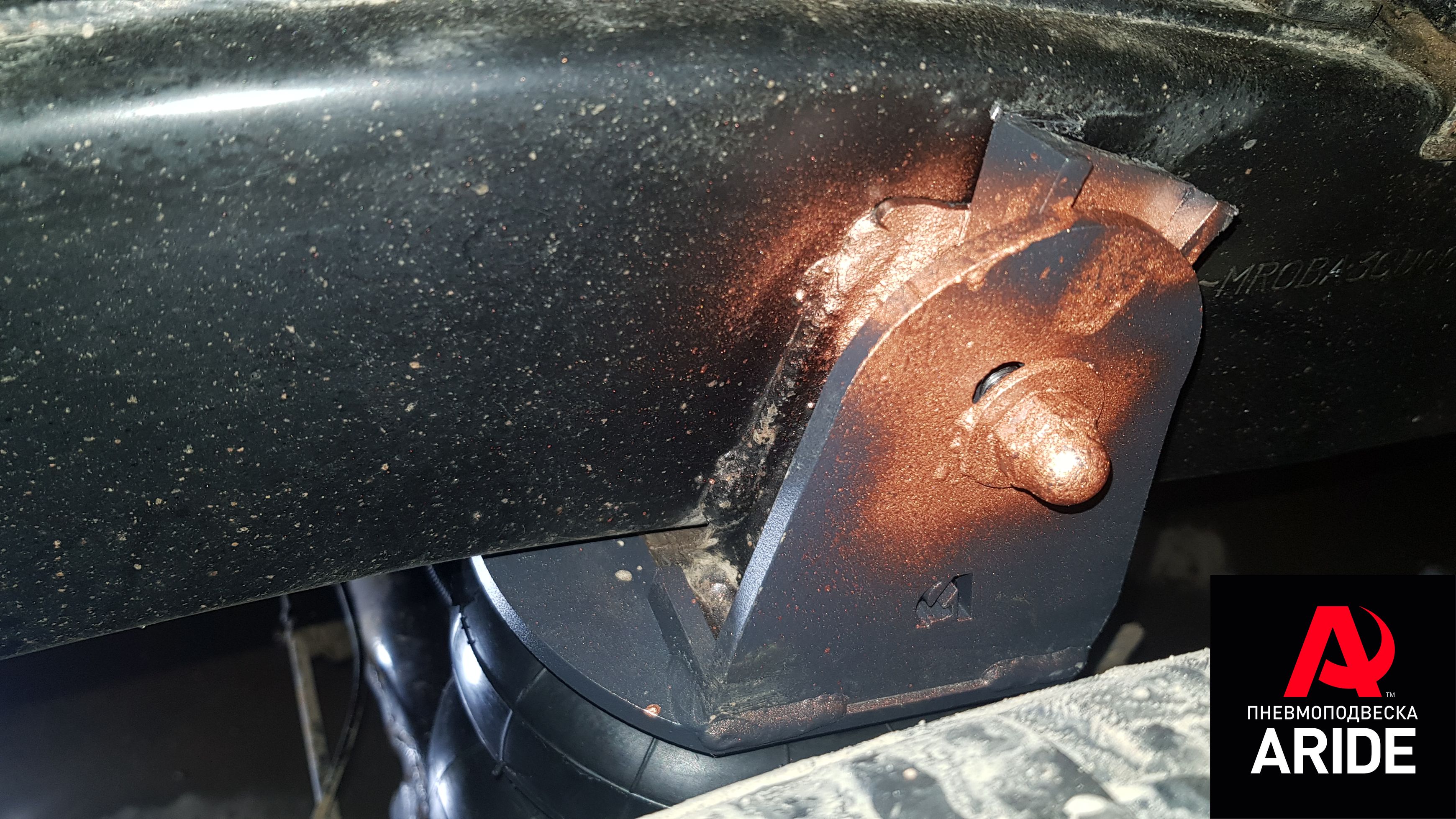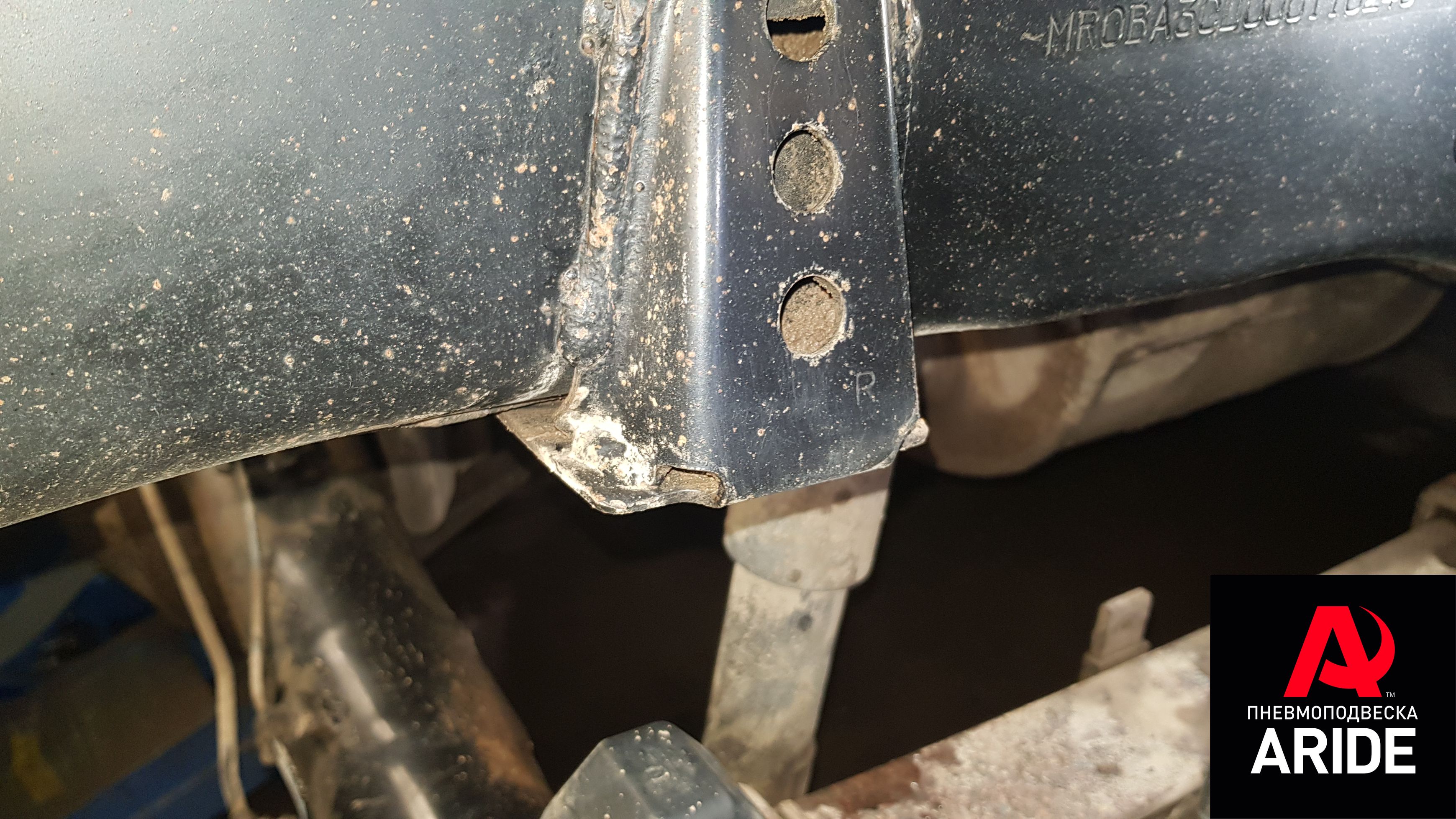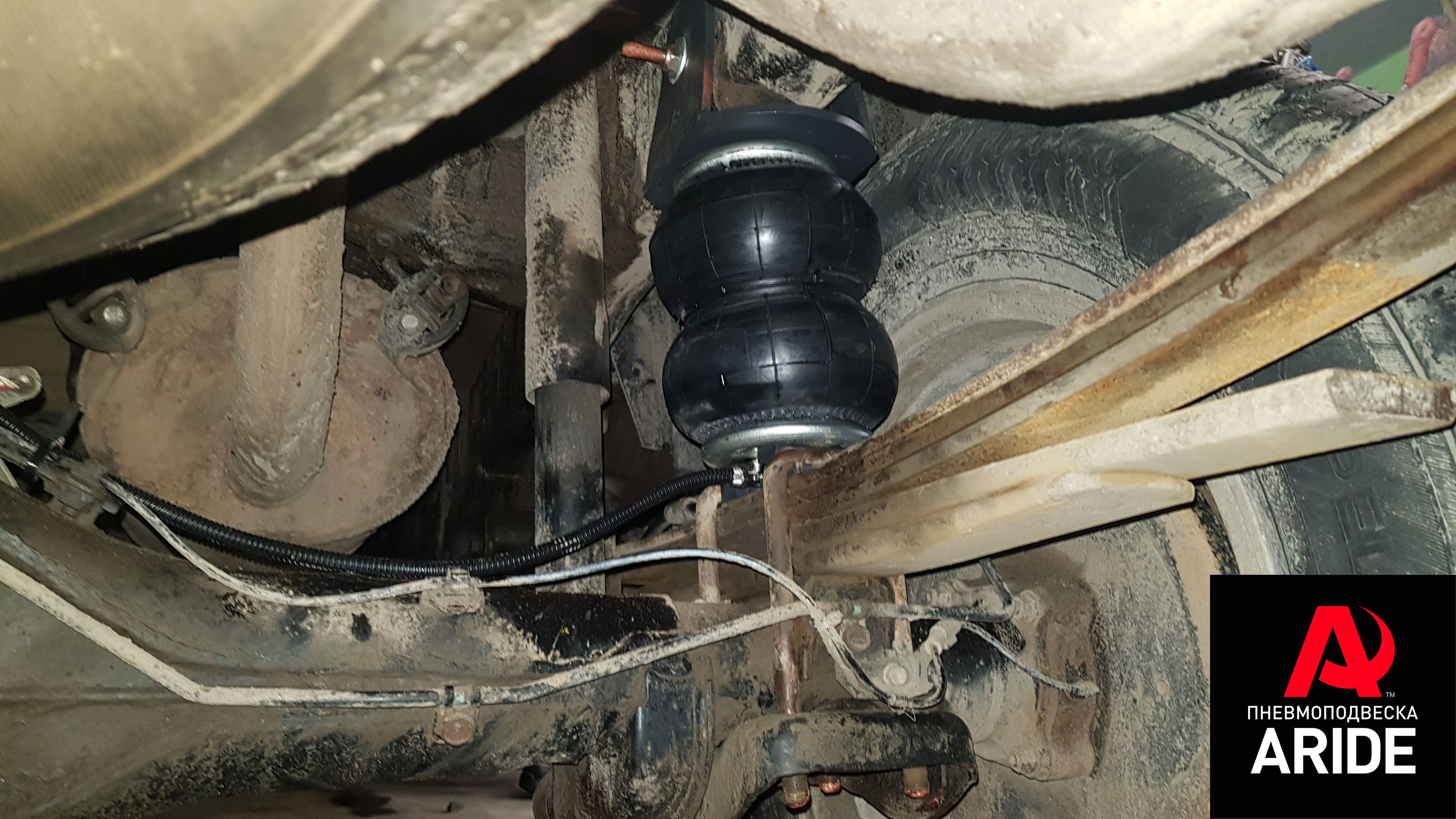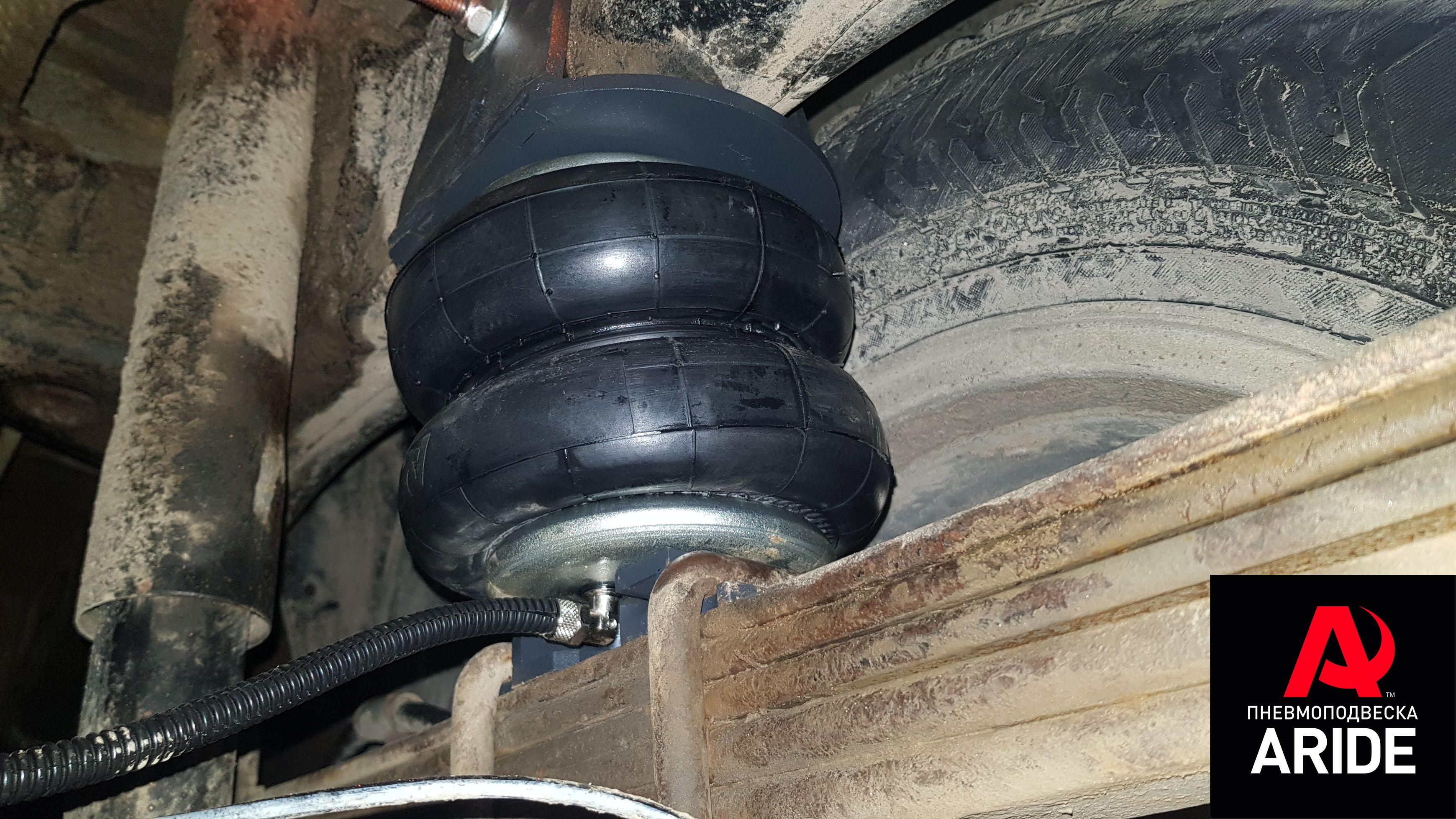Для решения данной проблемы, нашими инженерами давно был разработан и внедрён в производство комплект вспомогательной пневмоподвески. Данный комплект устанавливается между рамой и пакетом рессор. Верхняя часть комплекта полностью обхватывает раму и крепится к ней за счёт болта, который насквозь проходит раму и плотно прижимает комплект верхний кронштейн. Для установки нижнего кронштейна нужно немного ослабить стремянные болты и установить стальной кронштейн под стремянные болты. Это полностью обеспечивает надёжное крепление и исключает любую возможность сдвига кронштейна. Подвод воздуха к пневмопэлементам осуществляется с нижней части.