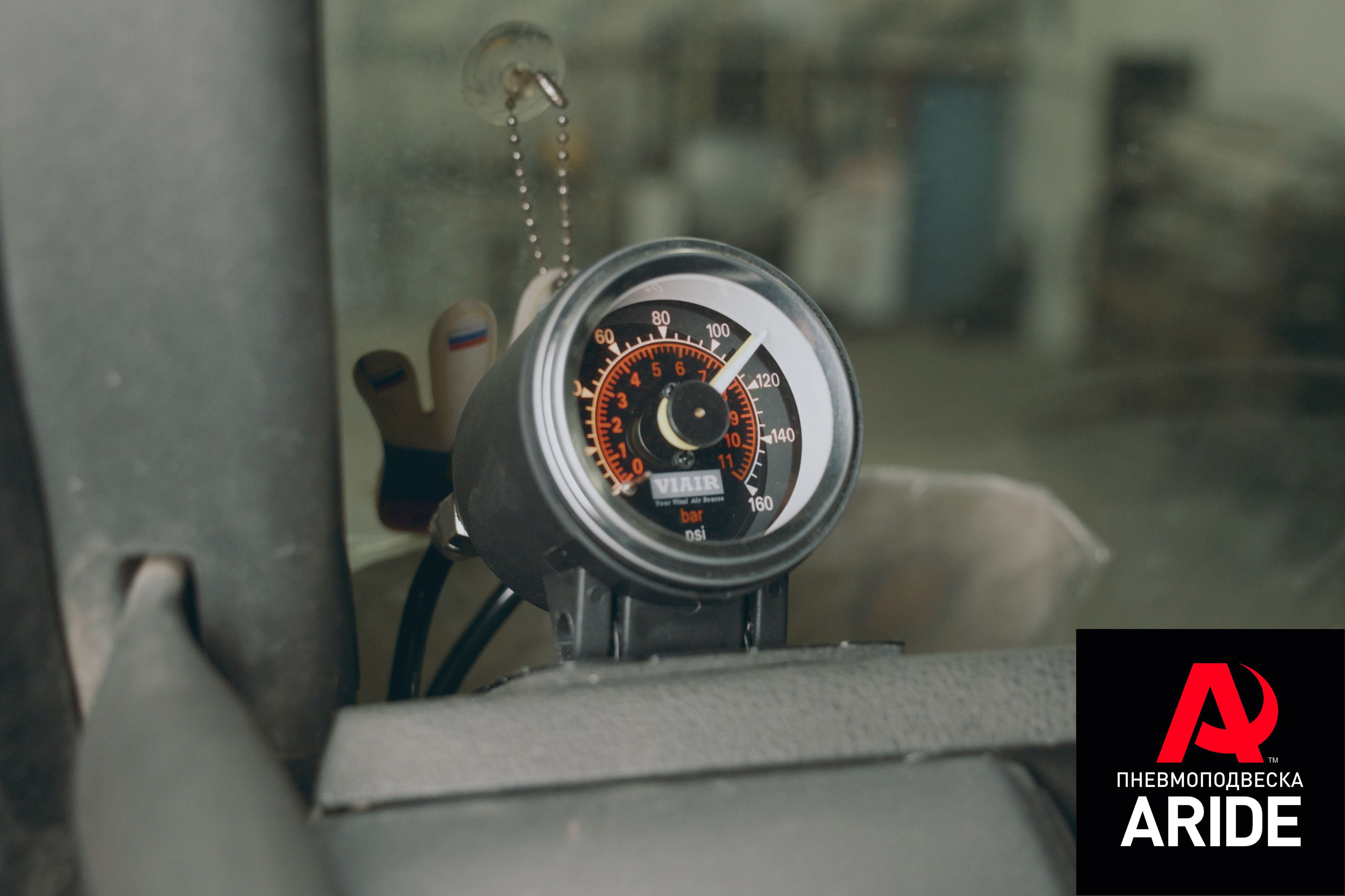 А для отслеживания давления в подушках, в левый верхний угол торпедо, нашими мастерами был установлен двухстрелочный манометр с подсветкой. Подсветка работает при включении зажигания.