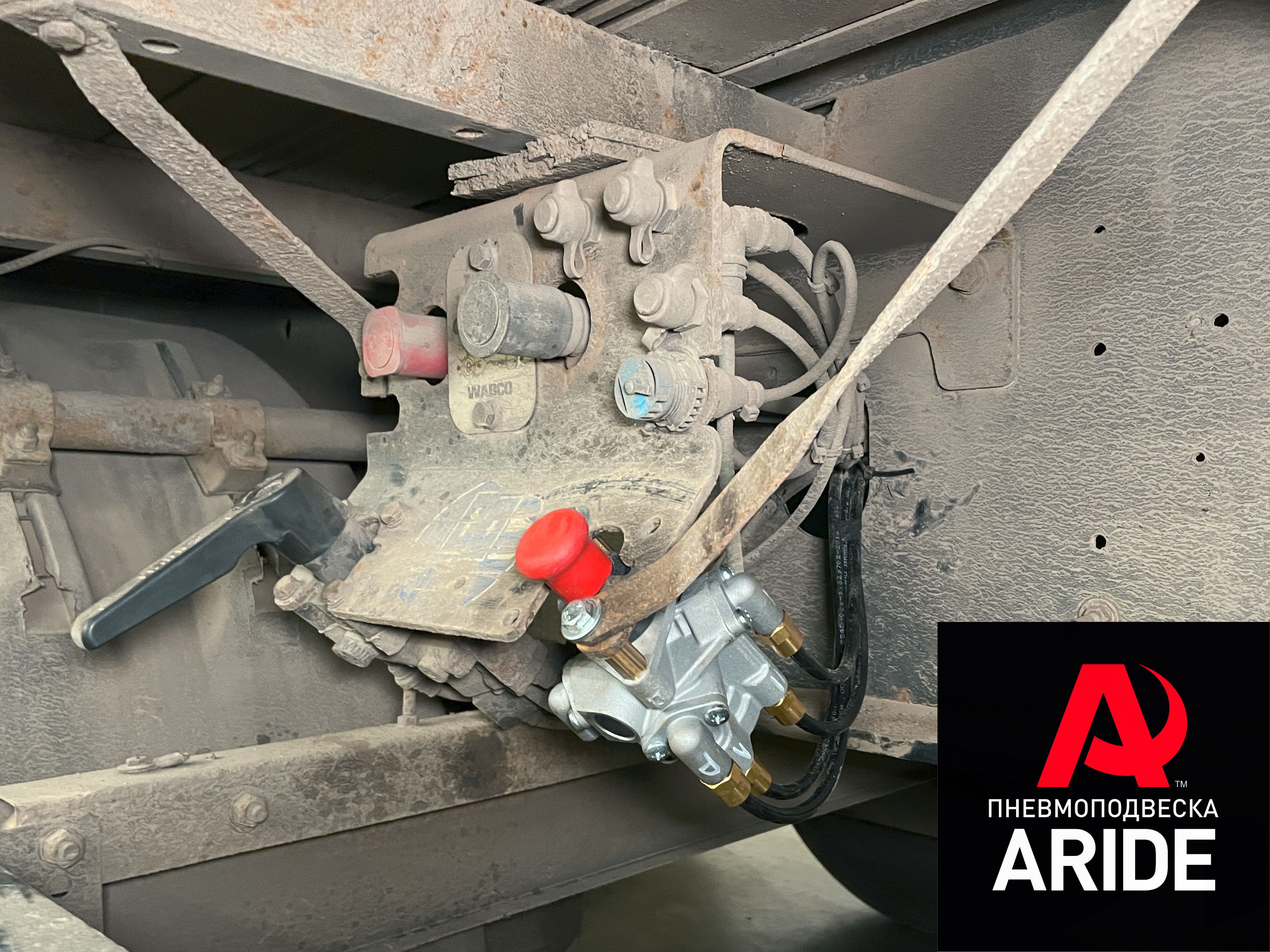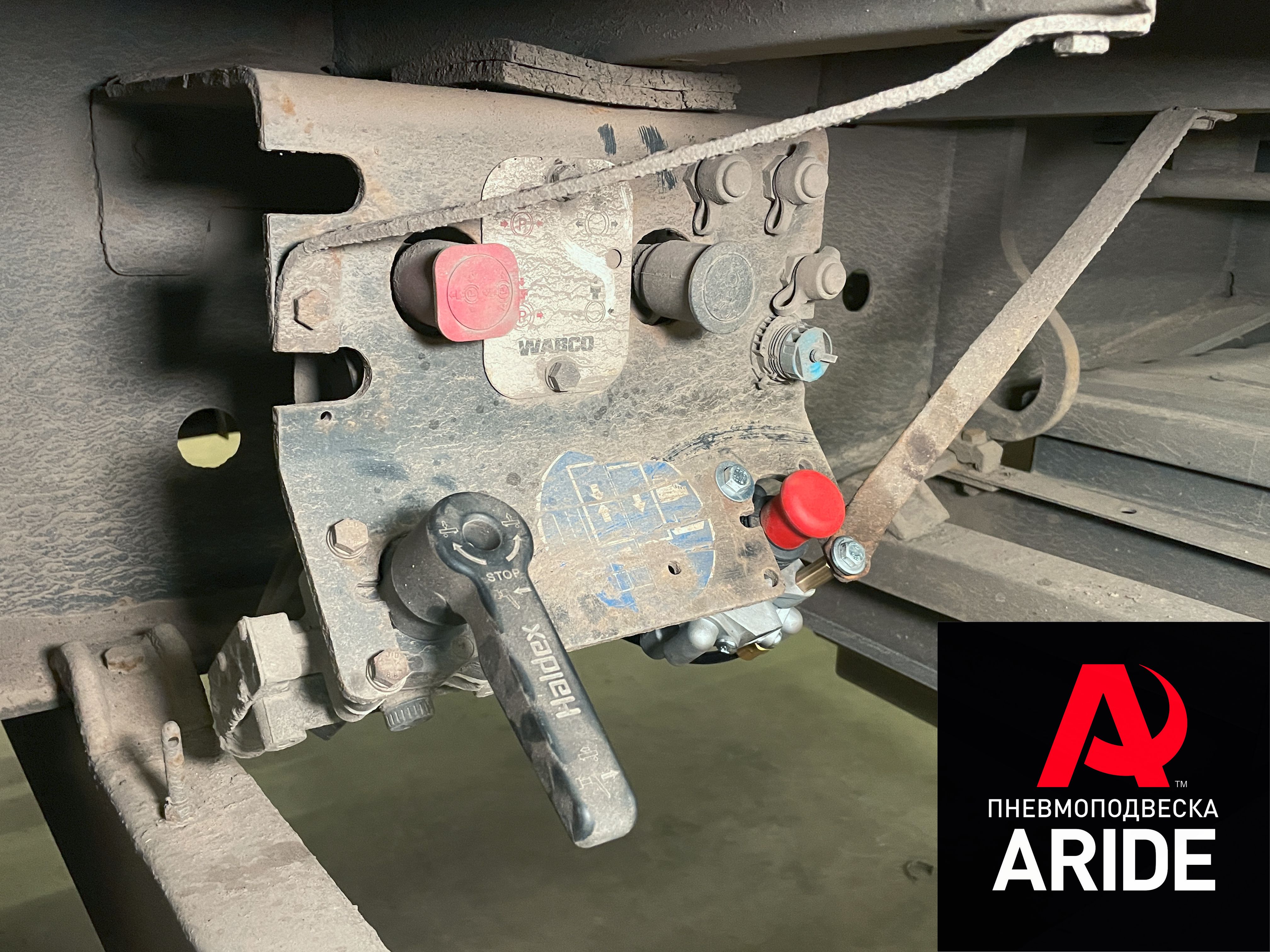 Для того что бы сбрасывать давление с заводских пневмоподушек и нагнетать давление в новые установленные пневмоподушки для подъёма оси, была установлена специальная система управления. Главная составляющая данной системы - это специальный кран. При нажатии на кран воздух уходит из заводских подушек, и поступает в подушки для подъёма оси. А при вытягивании его на себя, операция становится полностью противоположной.