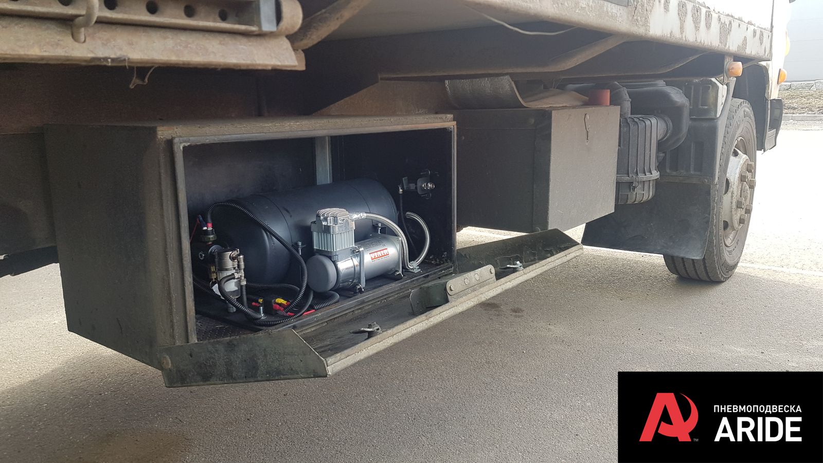 На автомобиль Hyundai HD78 были установлены комплекты пневмоподвески на переднюю и заднюю ось и установлена мощная система управления с компрессором на 24в.