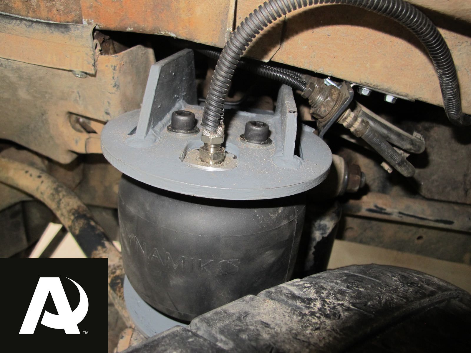 Установленный задний комплект пневмоподвески в дополнение к рессорам