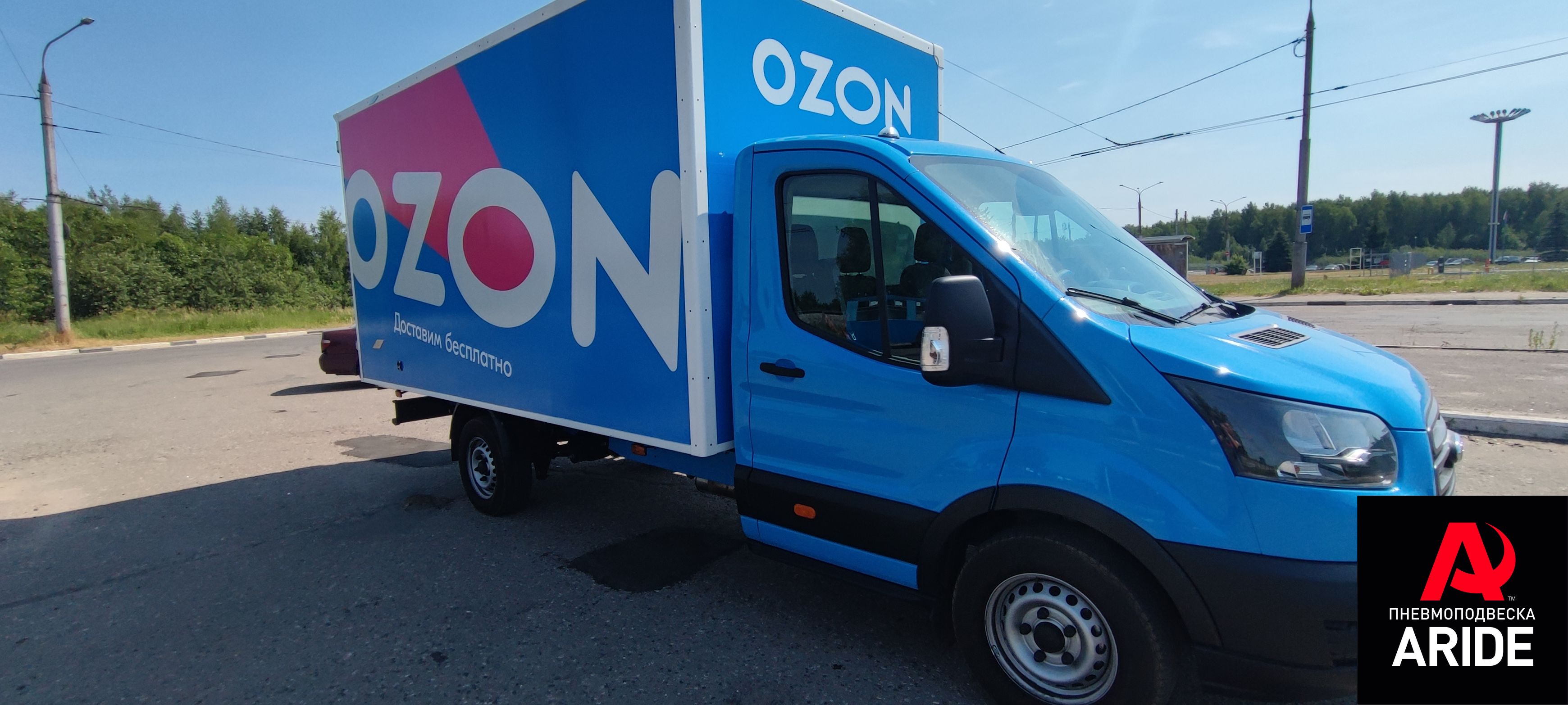Проект по установке комплекта вспомогательной пневмоподвески на автомобиль Ford Transit. В данном случае у нас оказался брендированный автомобиль маркетплейса OZON.