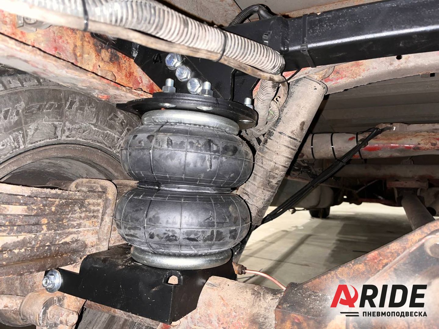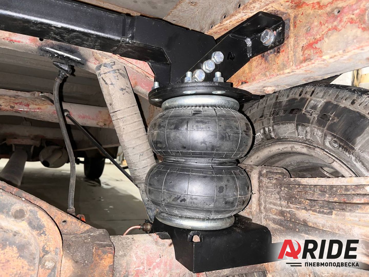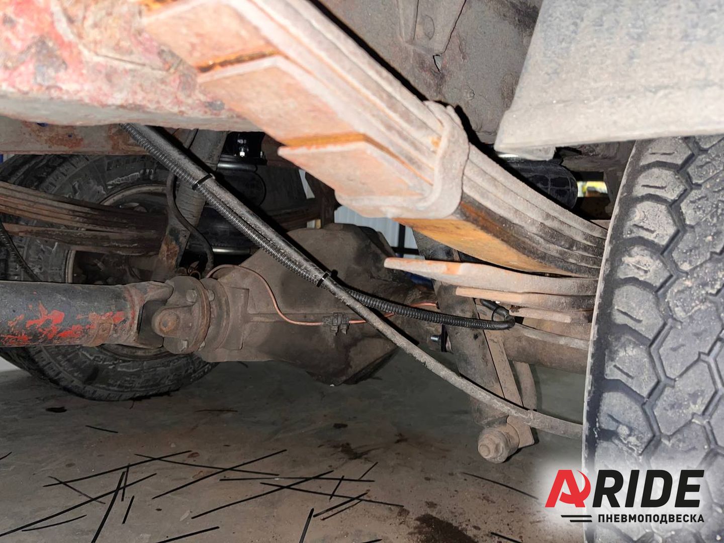 Данному автомобилю более двадцати лет, следовательно его заводской пакет рессор сильно просел. К тому же данный коммерческий транспорт оснащён тяжёлой надстройкой и гидробортом. Эти факторы очень сильно влияют на износ рессор. Для решения проблемой с грузоподъёмностью, было принято решение по установке комплекта вспомогательной пневматической подвески.