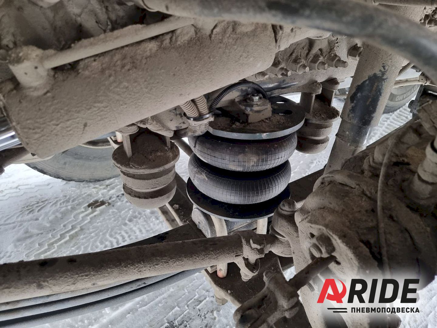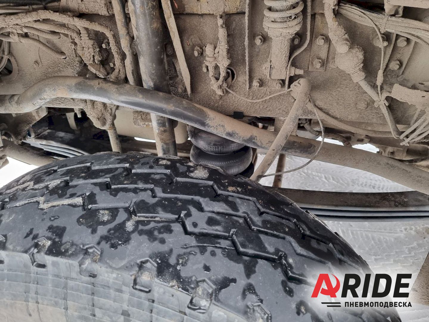 Не смотря на то, что автомобиль создан для перевозки очень тяжёлых грузов, а так же оснащён двумя поворотными осями спереди, передние листы рессор часто не выдерживают нагрузки и ломаются в самый не подходящий для этого момент. Замена рессора на данном автомобиле достаточно тяжёлый и трудоёмкий процесс. Да и цена рессор очень высока. Во избежание данных ситуаций, было принято решение по установке вспомогательных пневматических подушек, на обе передние оси. Комплект состоит сразу из четырёх подушек, которые способны компенсировать в совокупности до 8000 килограмм нагрузки.