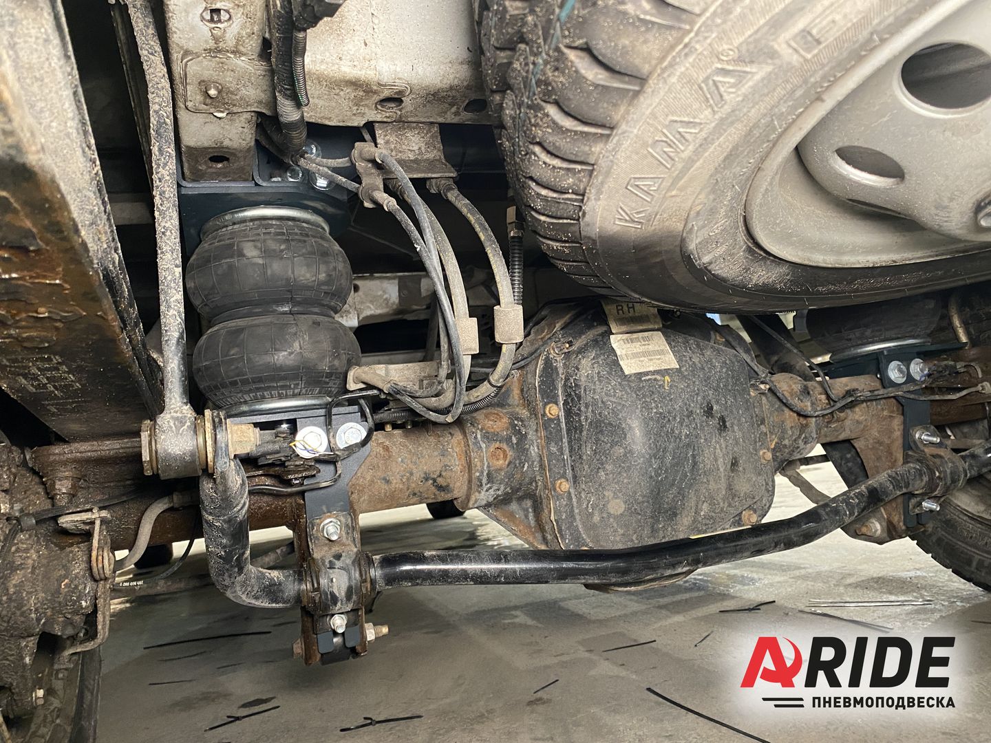 На данный автомобиль была установлена вспомогательная пневмоподвеска на заднюю ось, а так же двухконтурная система управления. Комплект устанавливаются между рамой и рессорами.