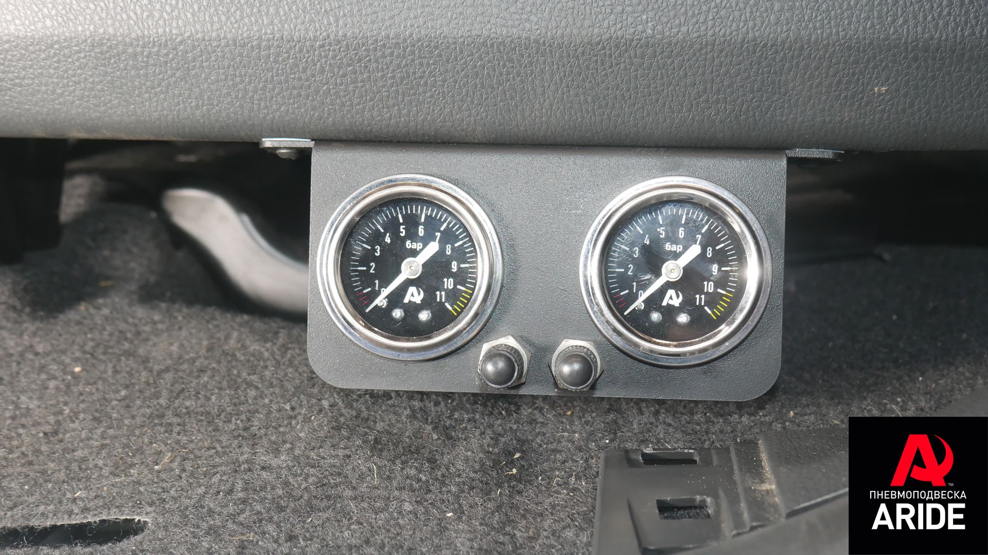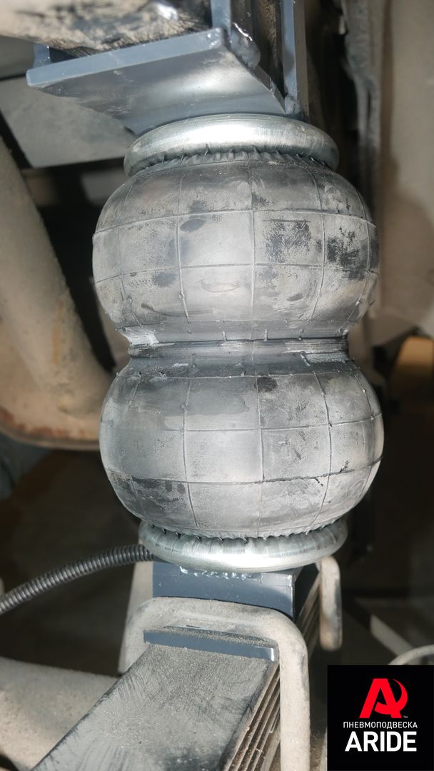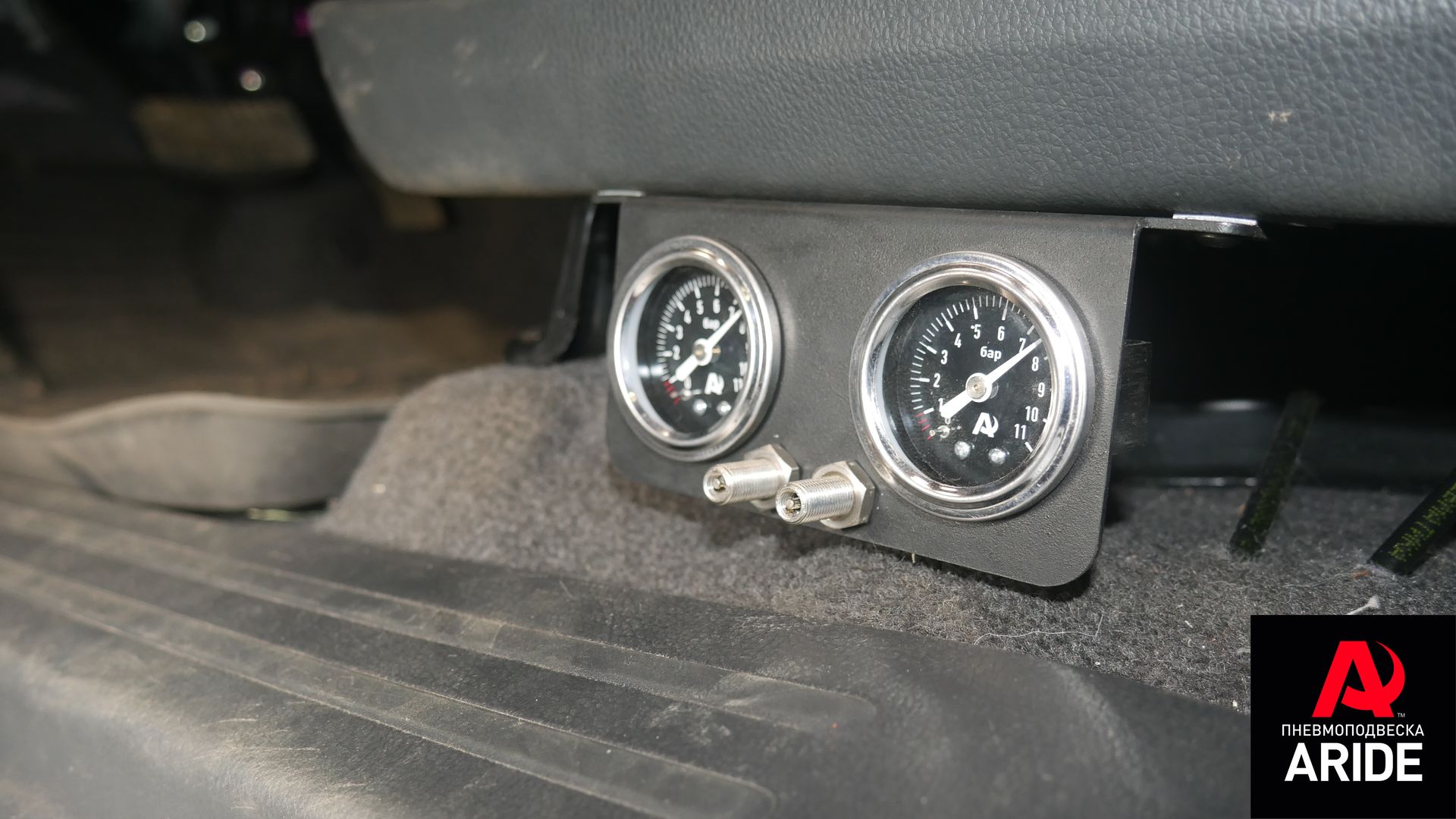 Установка надежного комплекта подвески для продления срока службы рессор на новой машине. На автомобиле планируется перевозка грузов. Для контроля давления в подушках установлены манометры и выведены ниппеля для подкачки.