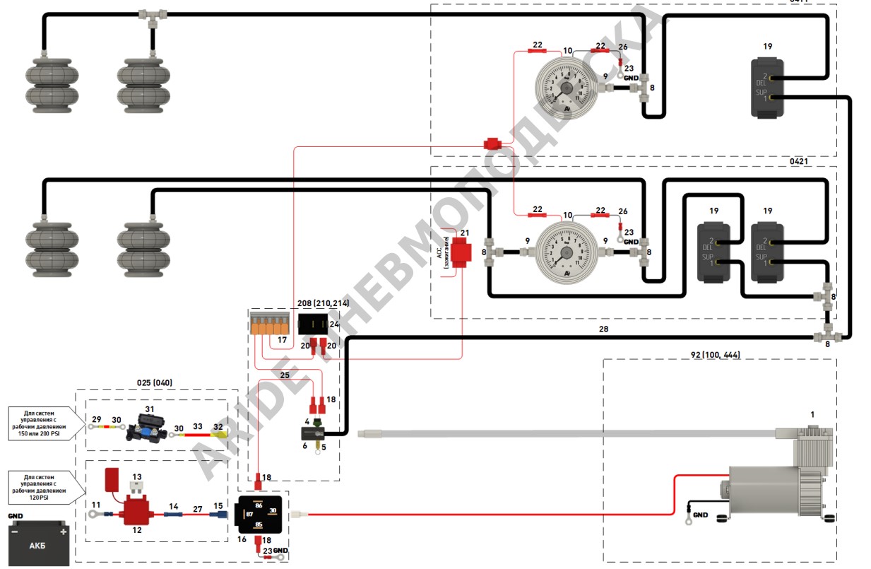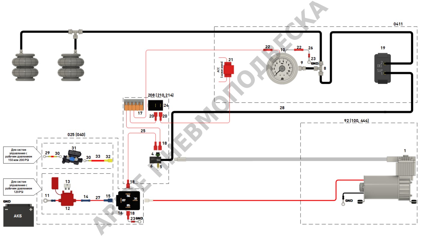 Схема подключения пневмоподвески - Серия Оптимал. Полезная информация от Арайд