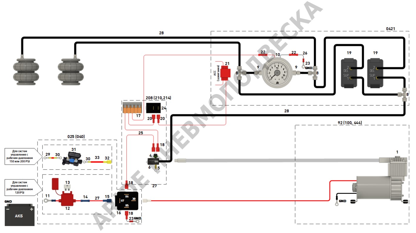 Схема подключения пневмоподвески - Серия Оптимал